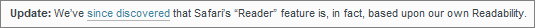 By the way, the Readability team initially praised Apple for its product before realizing that it was using its own code.