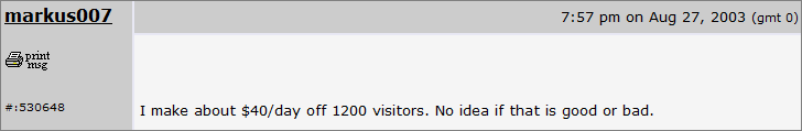 I make about $40 a day with 1,200 visitors. I have no idea if this is good or bad.