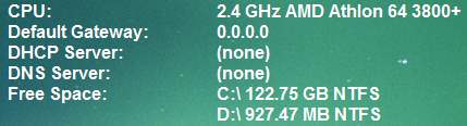 Displaying system information in the background of the desktop: free disk space, processor use, etc. It consumes few resources. The image on the right contains only a small part of the information that can be displayed.
