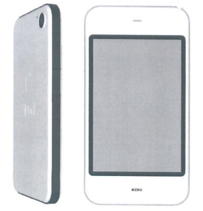 Apple files patents D 618 677 describing a rectangular device with rounded corners and D 583 087, black with a glazed side. However, the latter patent is questionable, as the design is similar to that of the already Japanese patented Sharp device (JPN No. 1241638).