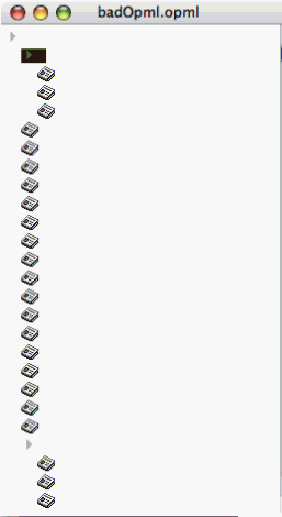 Each outline element must have at least one text attribute that is displayed when the OPML file is opened by plan. Missing the text attribute will render the plan display useless in the plan software. This is what the user should see - a clearly unacceptable situation.
